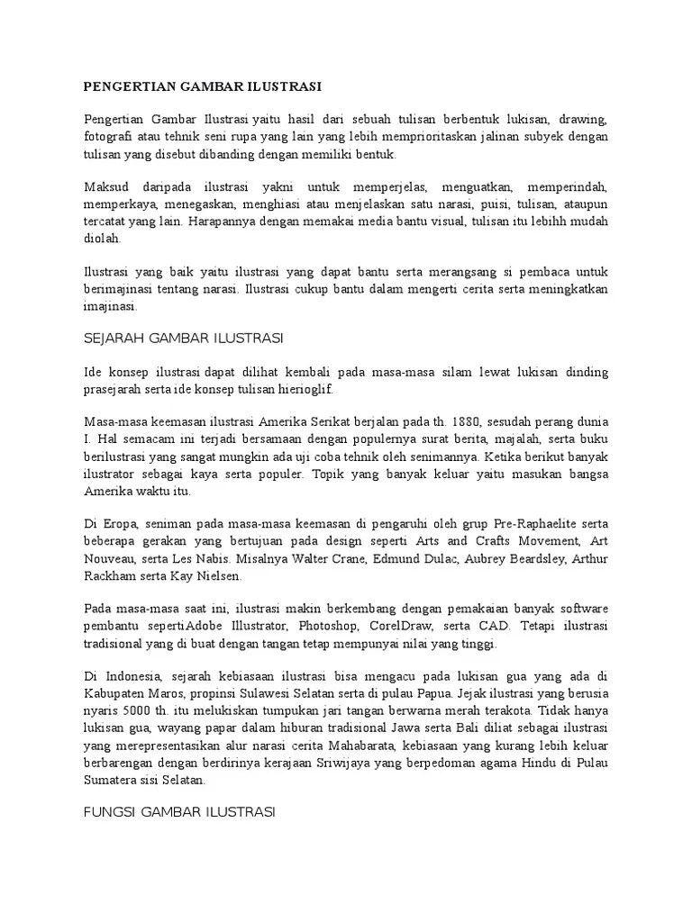 Jabarkan mengenai gambar ilustrasi yang baik! Menurut rohidi ilustrasi merupakan gambar yang berhubungan dengan seni rupa atau penggambaran sesuatu melalui elemen . Fungsi dari gambar ilustrasi yaitu . Yang dimaksud dengan gambar ilustrasi adalah suatu gambar yang dapat. Maka secara harfiah ilustrasi adalah sebuah gambar yang bertujuan untuk memperjelas ide cerita ataupun narasi.
